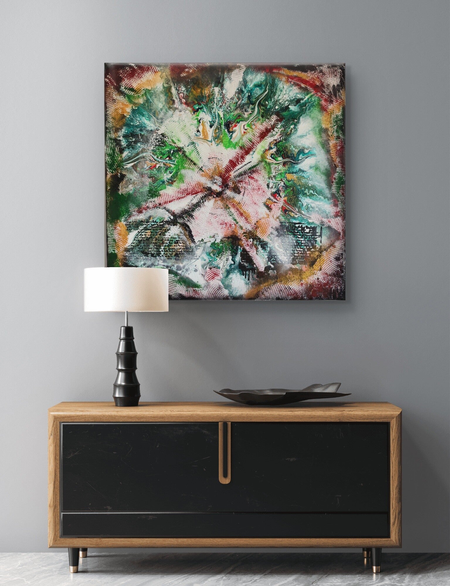 Acryl -Mixtechnik auf Hartfaserplatte mit Rahmen
