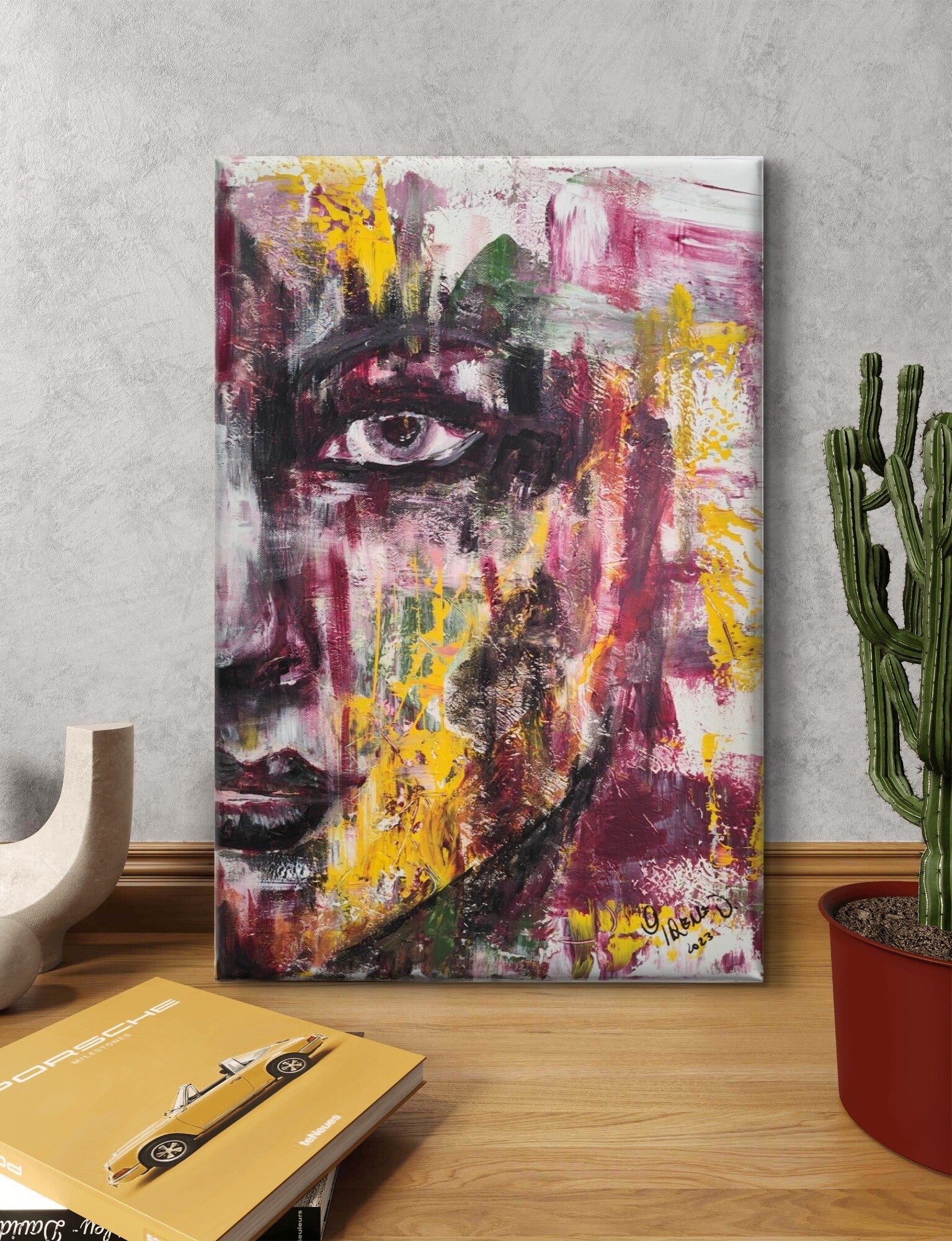 Ein intensiver Blick, eingehüllt in Farbe, Energie und Emotion. Ein Porträt voller Tiefe - roh, expressiv und kraftvoll.